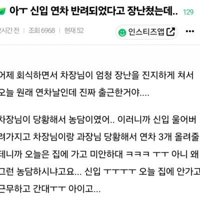 신입 연차 반려되었다고 장난쳤는데.jpg